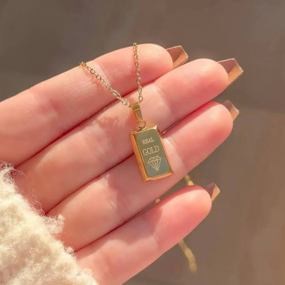 تتميز بتعليقة على شكل سبيكة ذهبية باللون الذهبي اللامع محفور عليها “REAL GOLD” مع تصميم جذاب يعكس القوة والأناقة في نفس الوقت
